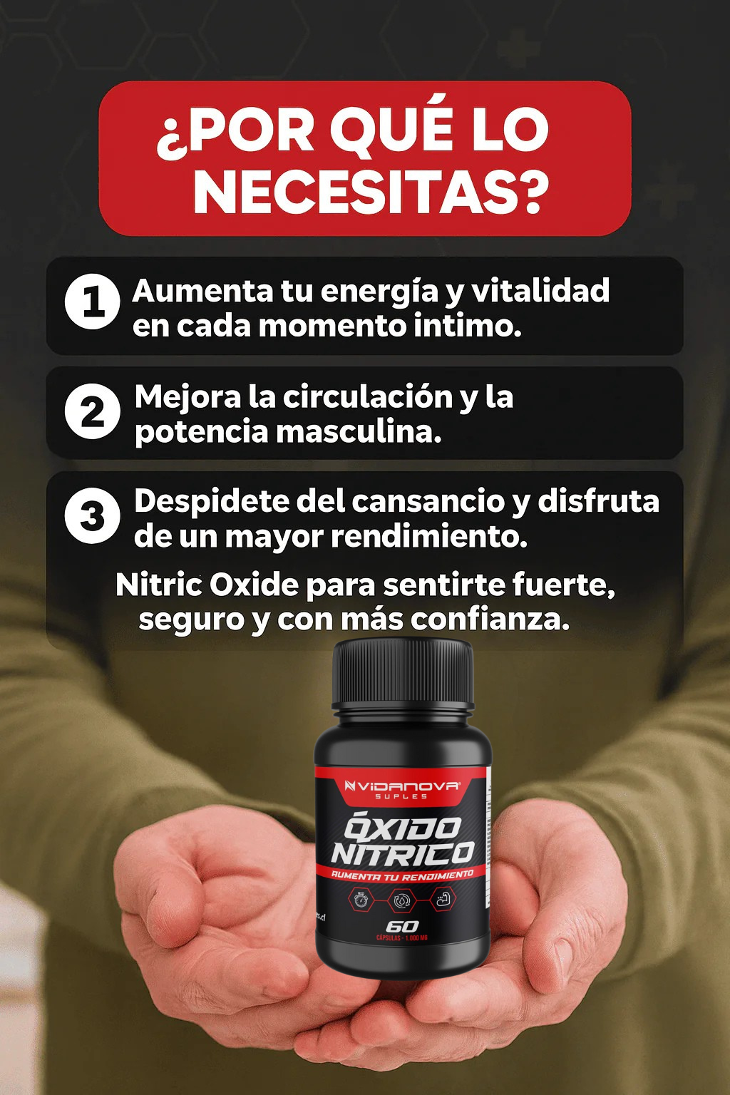 ✅ Sí. Su fórmula estimula la producción natural de óxido nítrico en el cuerpo, lo quemejora la circulación sanguínea, oxigenación y resistencia. Estudios científicos respaldan que una mejor circulación no solo potencia el rendimiento físico, sino también laconfianza íntima y la vitalidad diaria. Miles de hombres ya sienten la diferencia en su energía y en su relación de pareja.